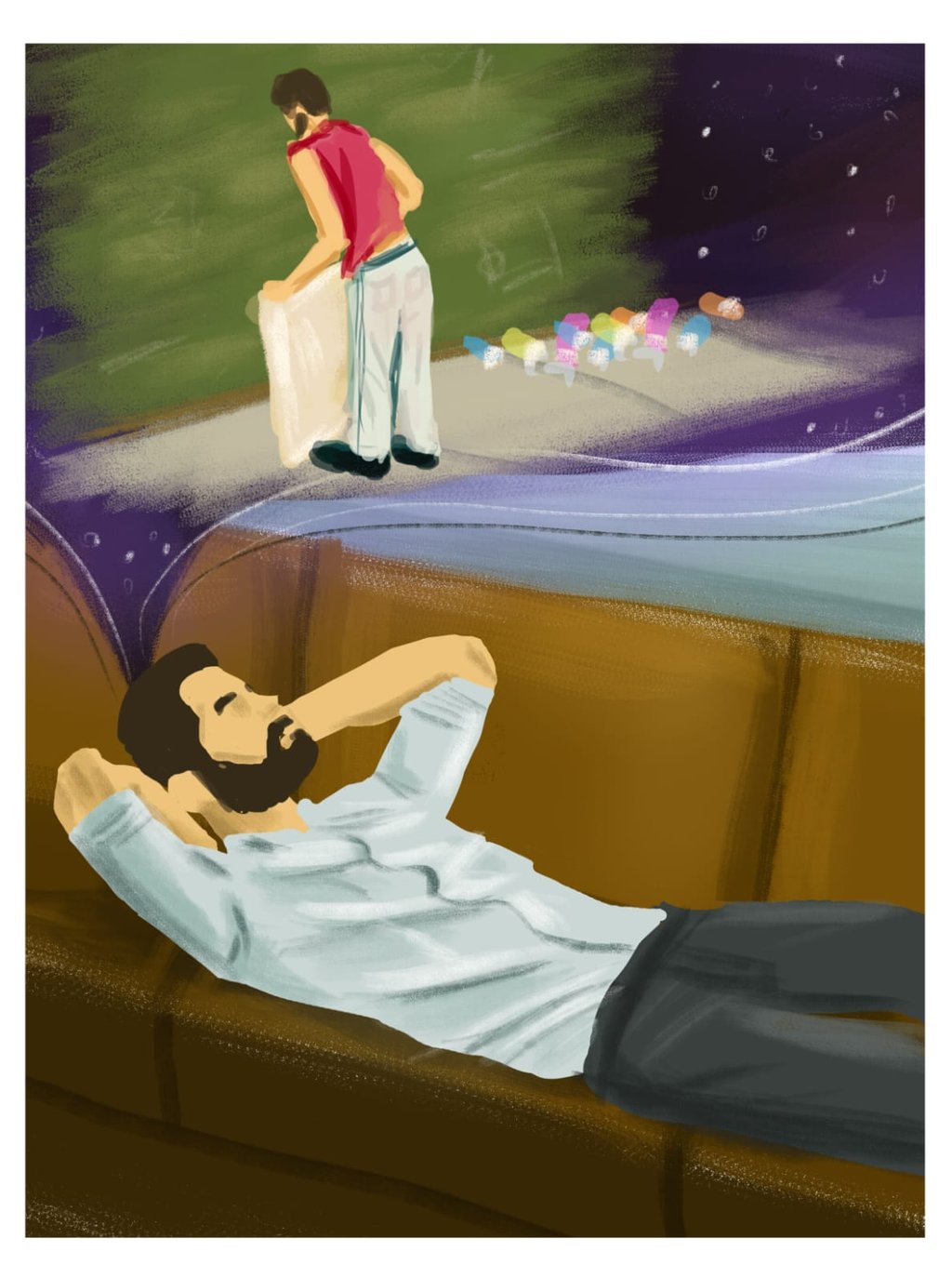 “Les juro que dañaré, insultaré y quemaré este jodido barrio. Los que me pisotearon estarán en la mira y nunca olvidaré a los que mal me hicieron ¡Malditos sean!”. Éstas fueron las palabras de Augusto Machado Vásquez, quien recogía las botellas del barrio. Augusto ni siquiera recordaba la razón por la cual discutía con los hombres que estaban sentados en el colmado de Apolinar. Éste sólo veía cómo estos hombres se reían y se burlaban de él. Ellos pensaban que Augusto estaba totalmente loco, pero Apolinar no se podía explicar a sí mismo dónde Augusto había aprendido a hablar tan perfectamente. Un día Augusto llevaba en una carretilla siete botellas (Cinco grandes y dos pequeñas), y de pronto comenzó a romperlas todas en una pared sin explicación alguna, luego recogió todos los vidrios e intentó venderlos, pero era obvio que no se los comprarían. Augusto dormía debajo del puente y casi todas las noches se entristecía mirando la vieja pulsera que le había quedado como recuerdo de su madre. A veces salía a mendigar algo para comer cuando no encontraba nada en los zafacones. Una noche Augusto decidió ir a buscar botellas en las aceras y sucedió algo sorprendente. En una esquina de la calle había aproximadamente setecientas botellas y Augusto no lo podía creer, todo parecía un sueño. Augusto soltó su carretilla y muy feliz corrió hacia aquella esquina. Un carro estuvo a punto de atropellarlo, pero éste siguió corriendo como si no hubiese pasado nada. Cuando estaba llegando a la esquina escuchó una voz que decía: “¡Augusto, Augusto!”, éste no hizo caso y continuó, pero la voz también insistía, y aunque esta voz le parecía conocida, Augusto quería llegar hasta donde estaban estas botellas con bastante ansiedad, pero cuando finalmente llegó al lugar y estando sus manos muy cerca de tocar esas botellas Augusto abrió sus ojos y estando acostado en su hermoso colchón escuchó a Apolinar Mendoza (Encargado de los asuntos internos de Augusto y mano derecha de éste), que le decía: “¡Augusto, Augusto!, levántate de la cama, toma un baño, vístete y sal afuera, pues los inversionistas y funcionarios te esperan para celebrar el triunfo”. Augusto contestó: “Ok Apolinar, diles que estaré listo en veinte minutos”. Mientras Augusto se duchaba pensaba profundamente en su sueño y se sentía muy raro. Era un sentimiento que pocas veces había palpado en su vida. Finalmente, Augusto salió a la sala y de pronto todos allí lo recibieron diciendo: “¡Felicidades señor presidente!”, con muchos aplausos y un banquete espectacular. Augusto reía y saludaba a todos en la sala, pero algunas ráfagas de aquel sueño invadían la cabeza de Augusto. De repente Apolinar pidió silencio en la sala y dijo: “Les tengo una sorpresa. En este video les mostraré las últimas palabras de nuestro excelentísimo señor presidente el día del cierre de campaña”. Las últimas palabras de aquel discurso fueron las siguientes: “Les prometo que cuidaré, protegeré y amaré este país. Los más necesitados serán nuestro principal objetivo y siempre recordaré las figuras heroicas que dieron todo su corazón por este pueblo ¡Dios los bendiga!”.